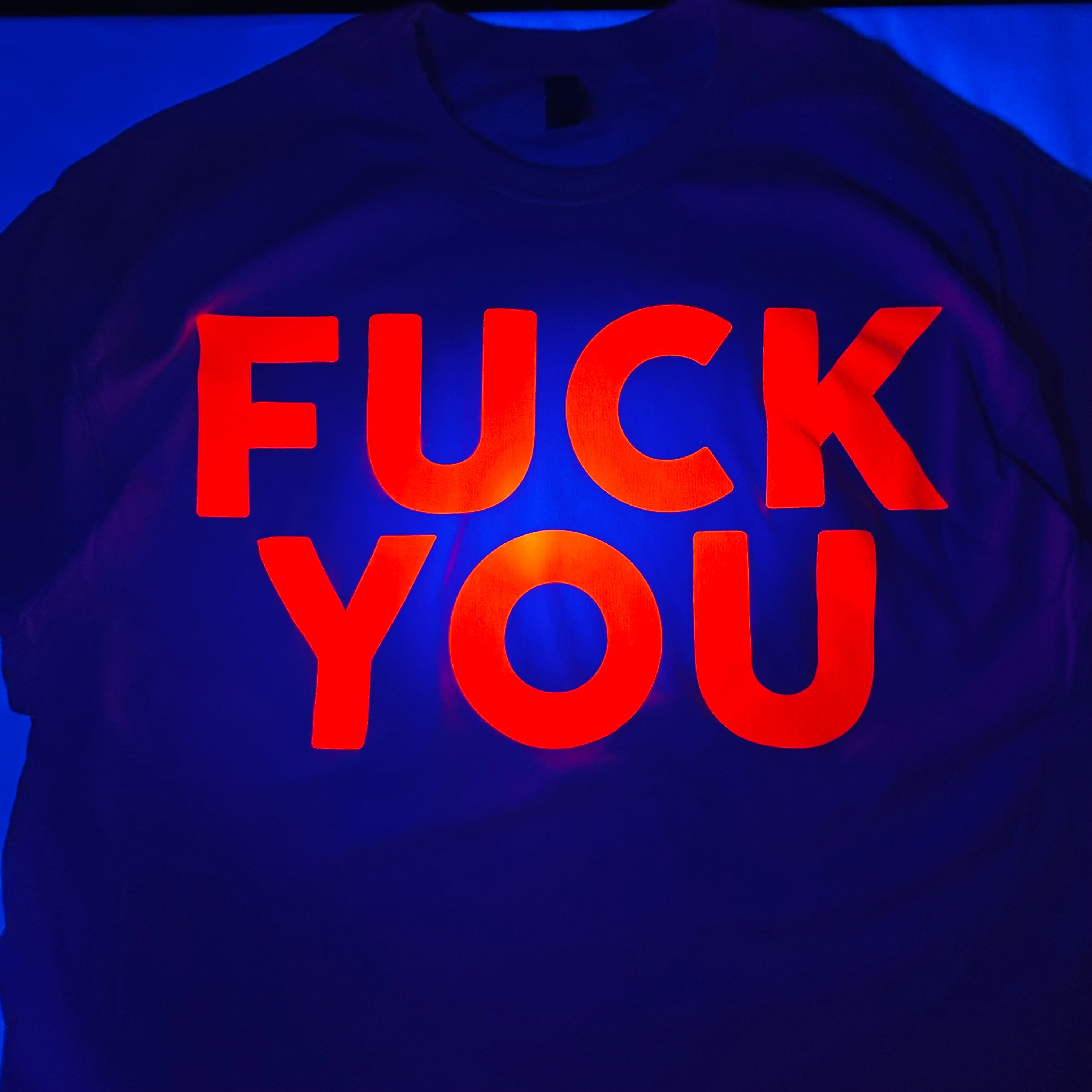 クールなアイスグレーボディに蛍光ピンクとブラックインクを使用してプリント。蛍光インクはバッチリブラックライトで光ります。