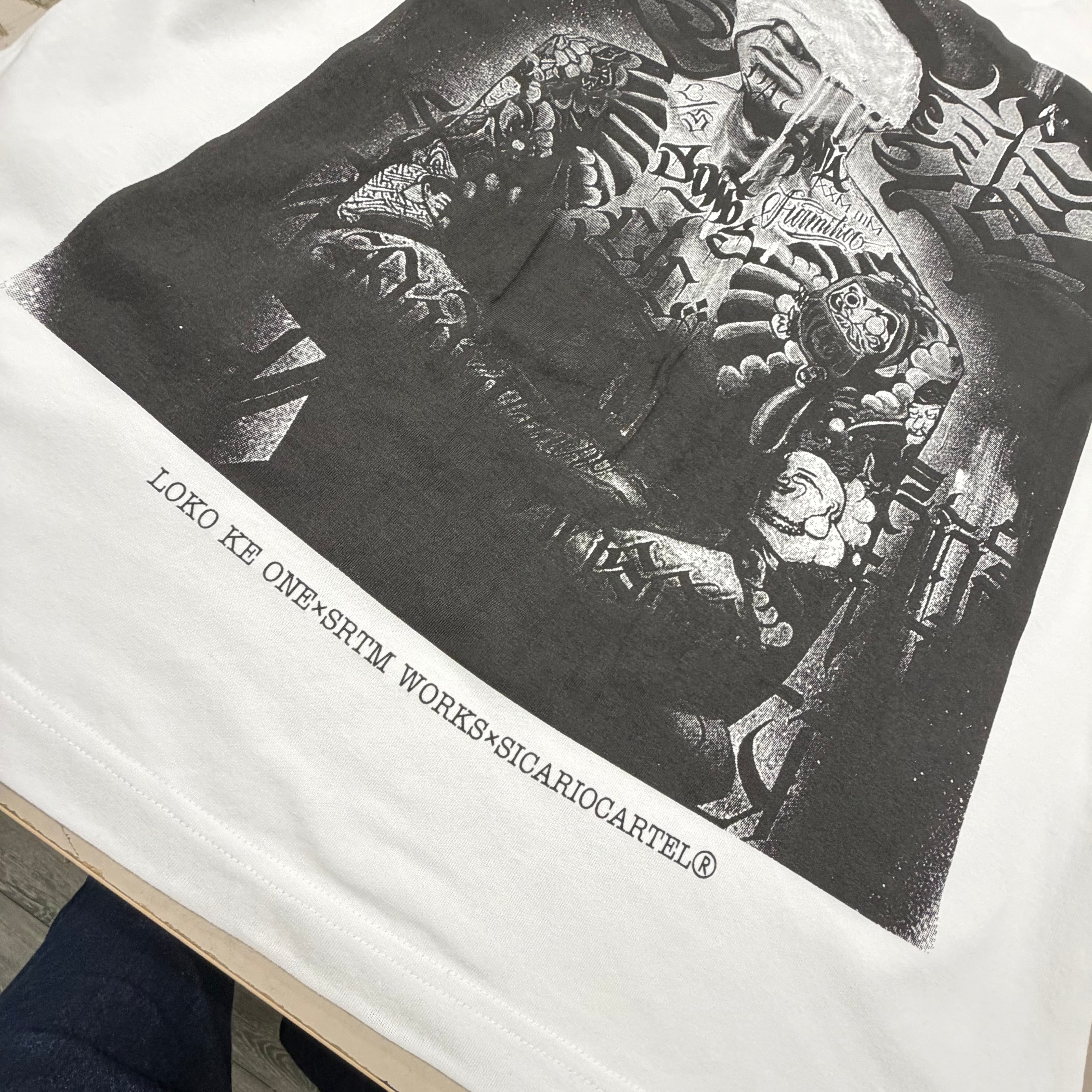 LOKO KE ONE × SRTM の作品を、私達が表現できる最大サイズのシルクスクリーンで落とし込みました。