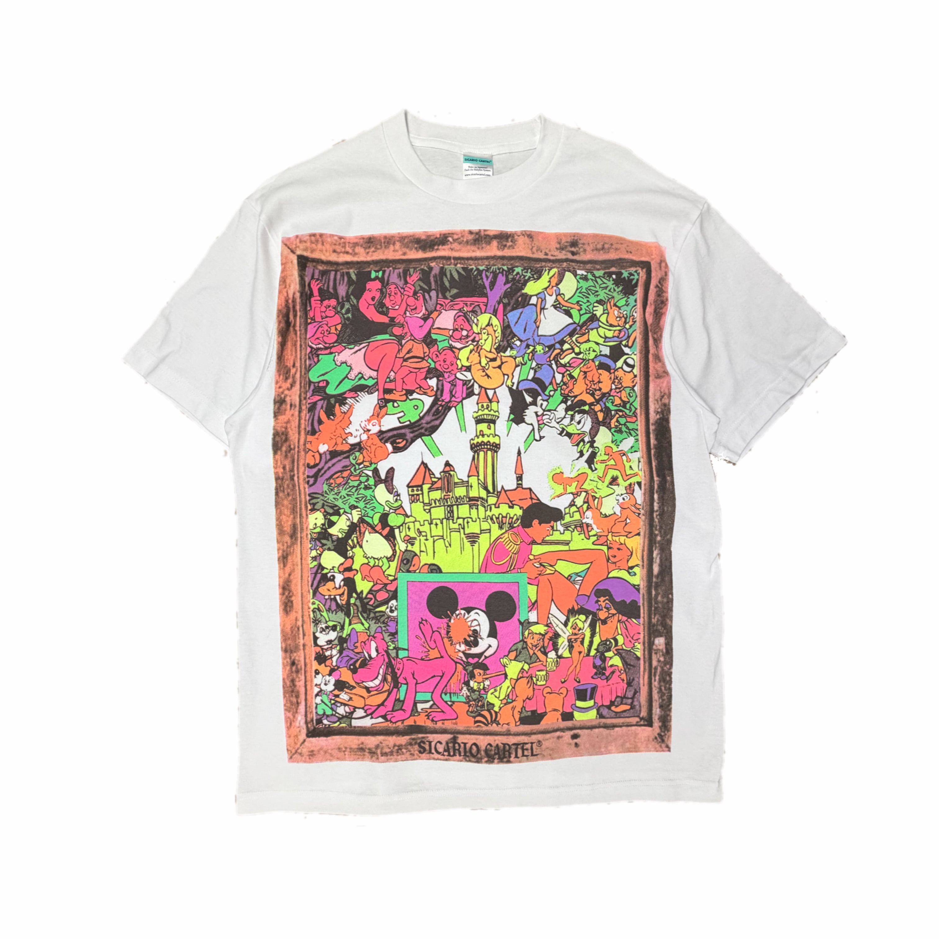 ポップな色彩で描かれたカオスな世界を、ヴィンテージフレームの中に閉じ込めた一枚。