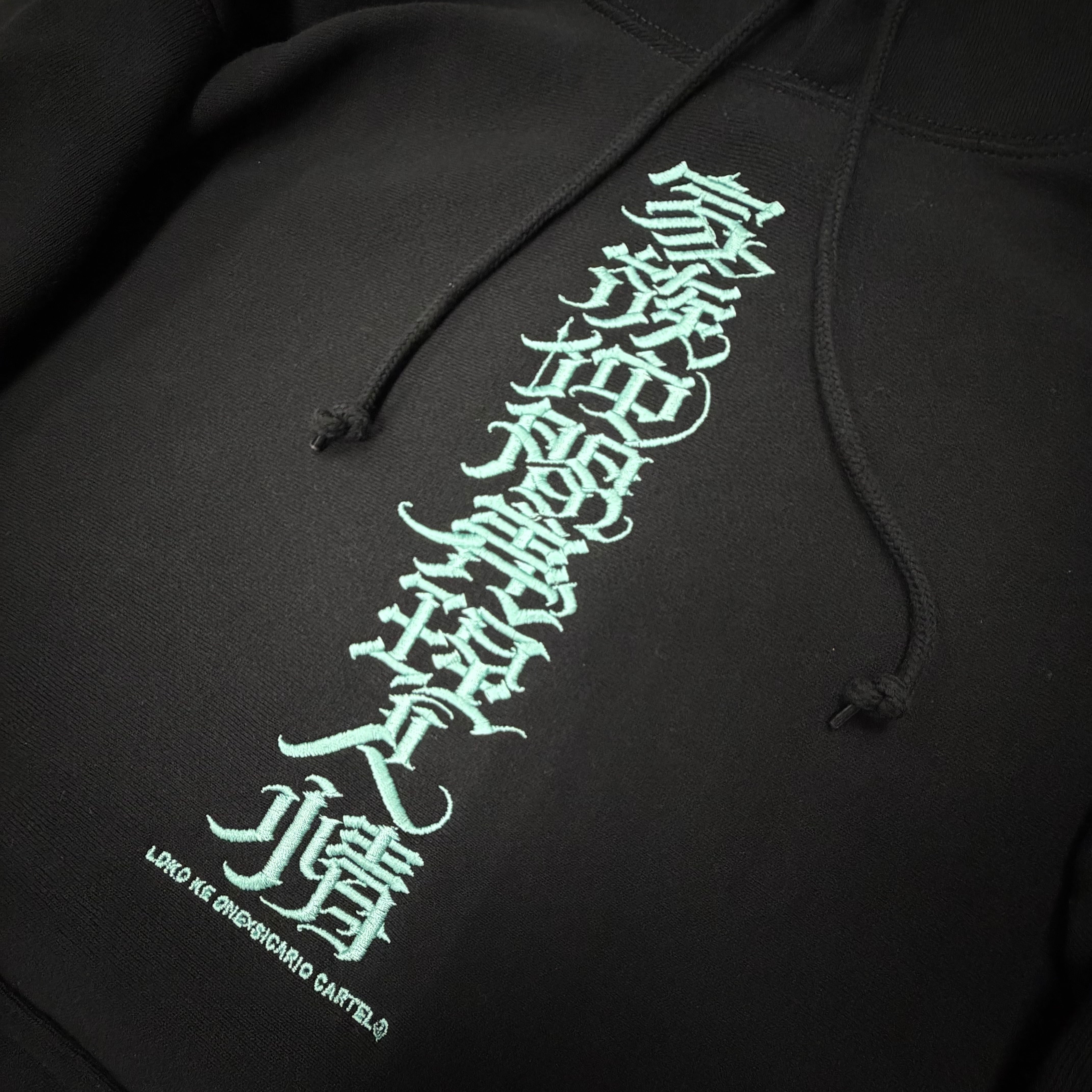【刺繍】家族仲間義理人情 12OZ HOODIE 黒×SB