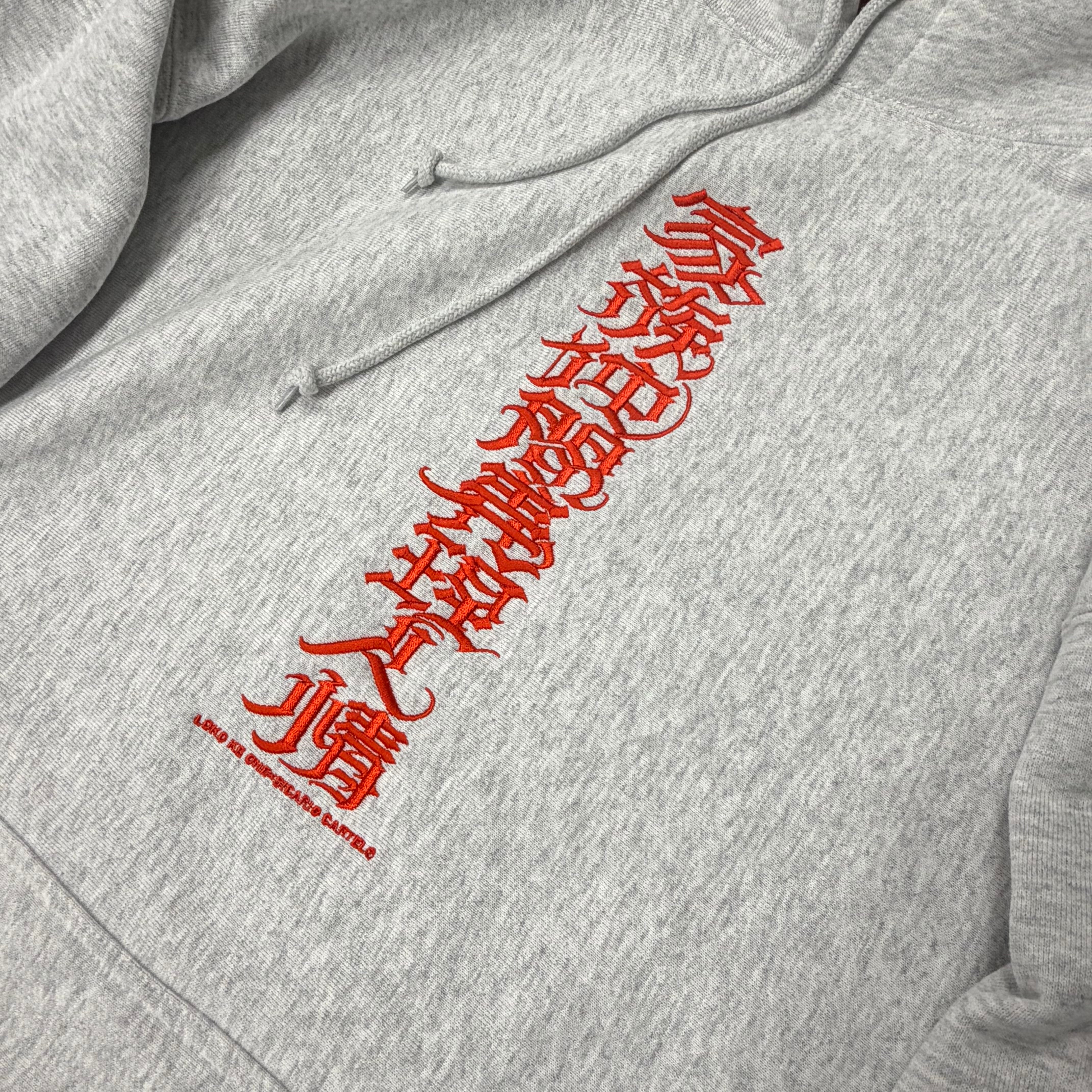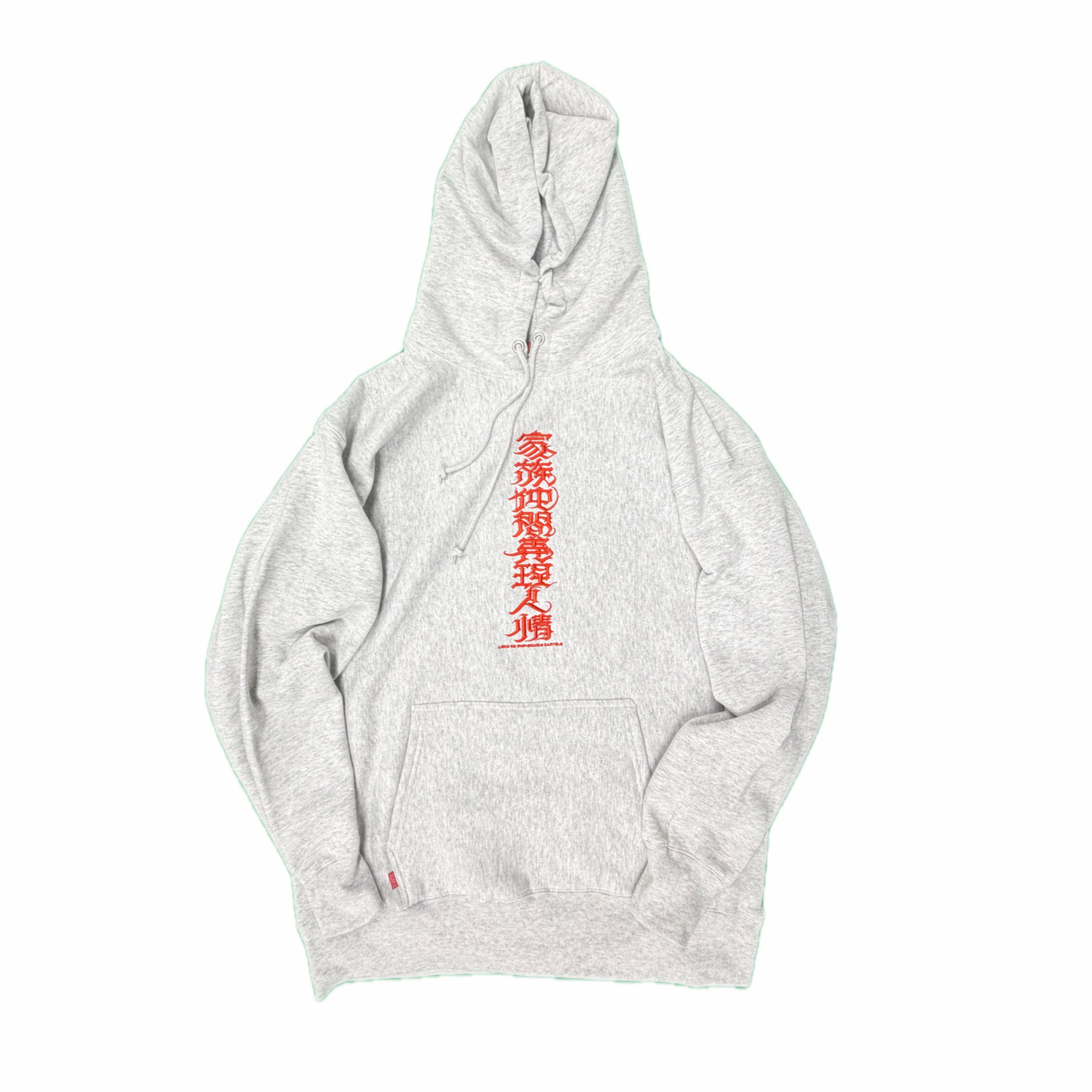 【刺繍】家族仲間義理人情 12OZ HOODIE アッシュ×朱