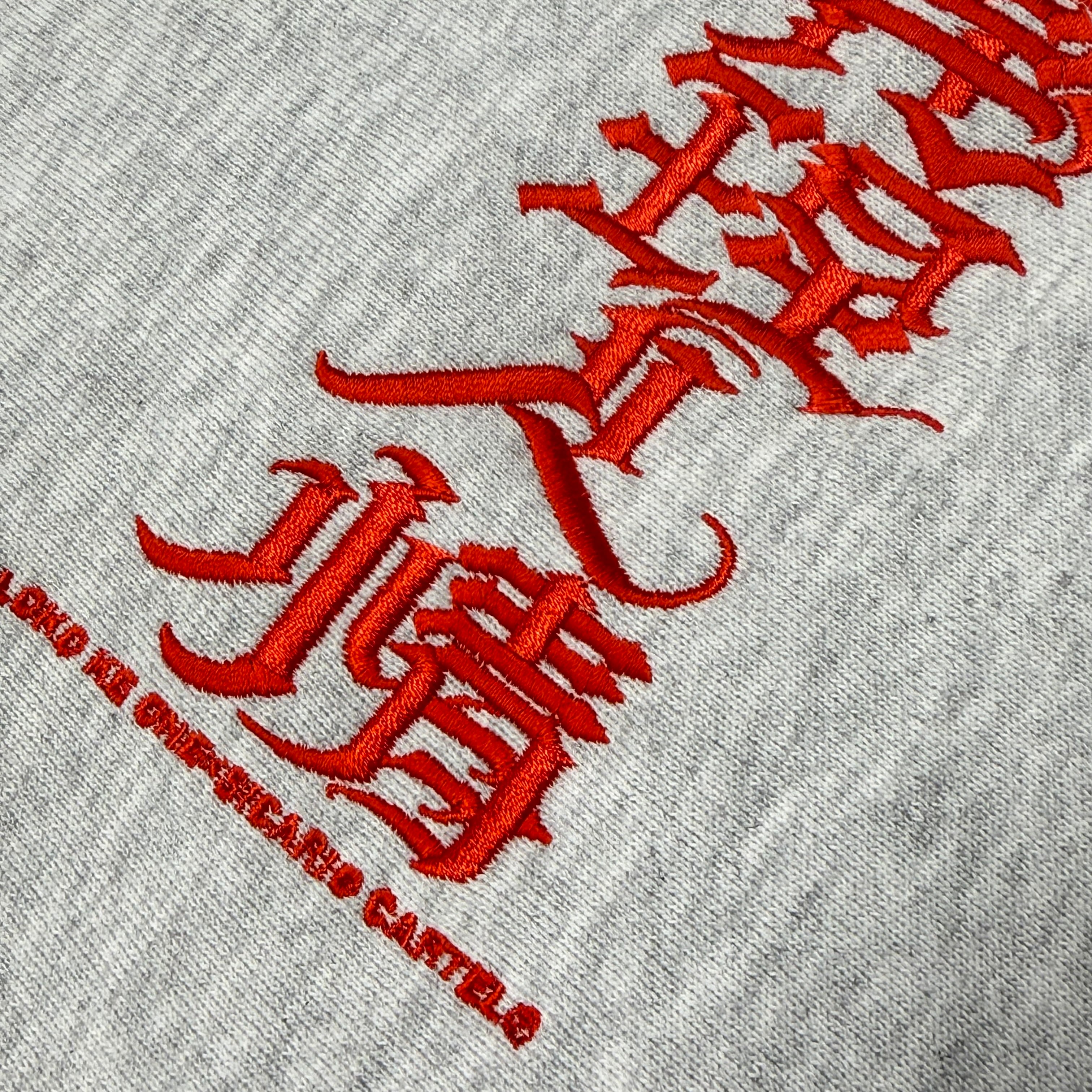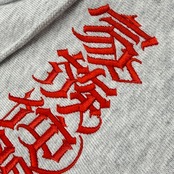 国内刺繍にて「家族仲間義理人情」LOKOKEONEデザインのクリミナルレタリングが入ります。12オンスの裏起毛スウェットを採用。リバースウィーブのような作りで厚手で大変丈夫です。長く愛用頂けるでしょう。