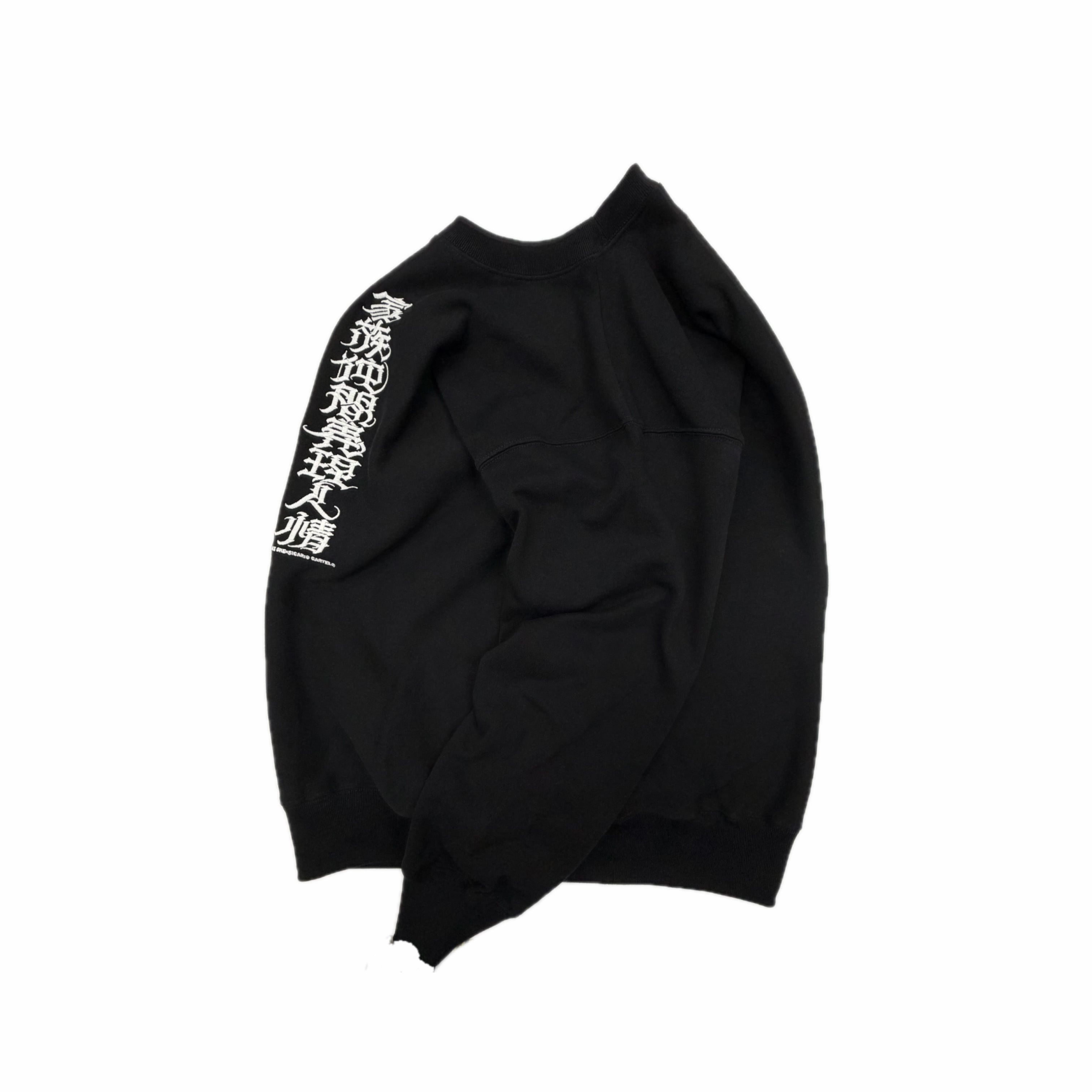 国内刺繍にて「家族仲間義理人情」LOKOKEONEデザインのクリミナルレタリングが入ります。12オンスの裏起毛スウェットを採用。リバースウィーブのような作りで厚手で大変丈夫です。長く愛用頂けるでしょう。
