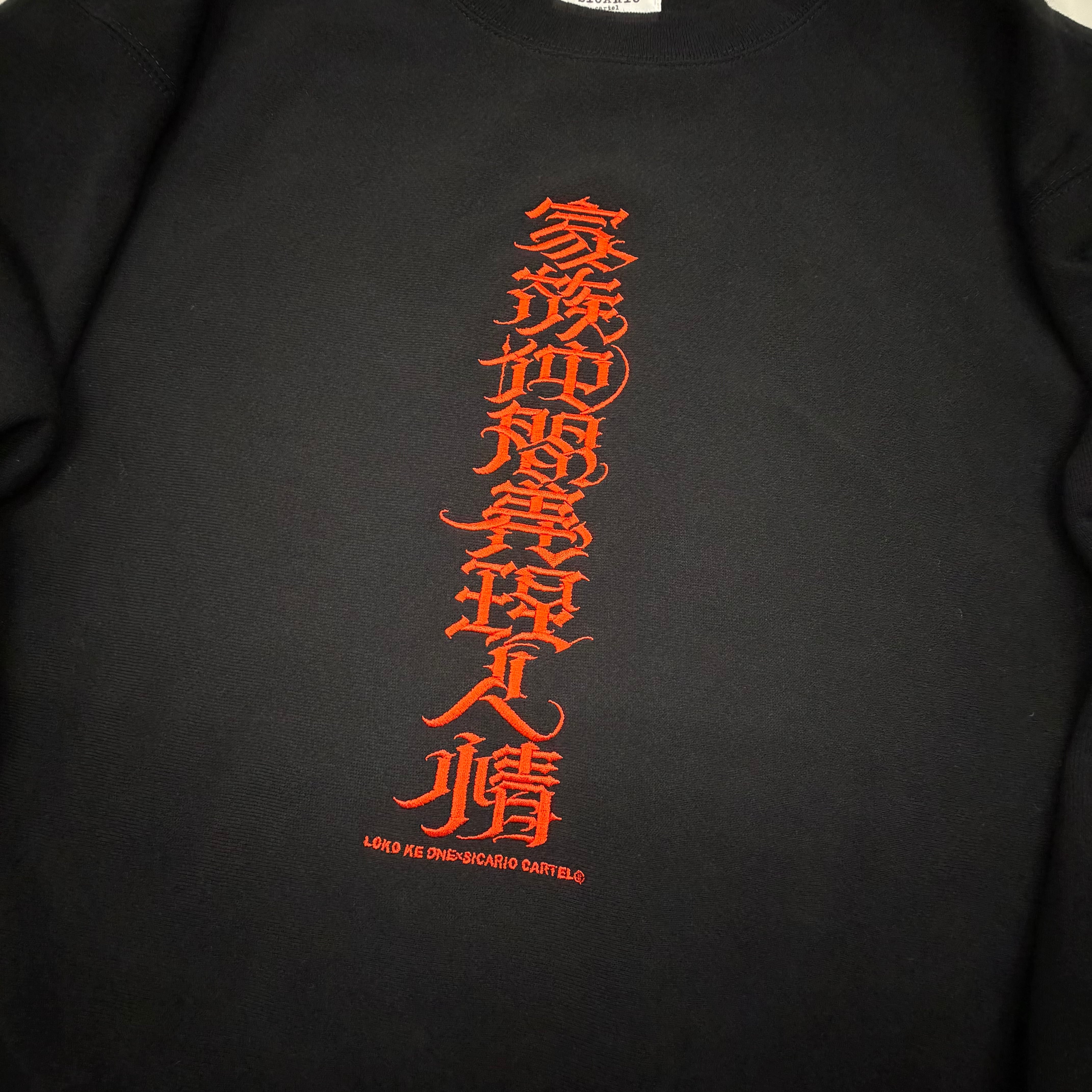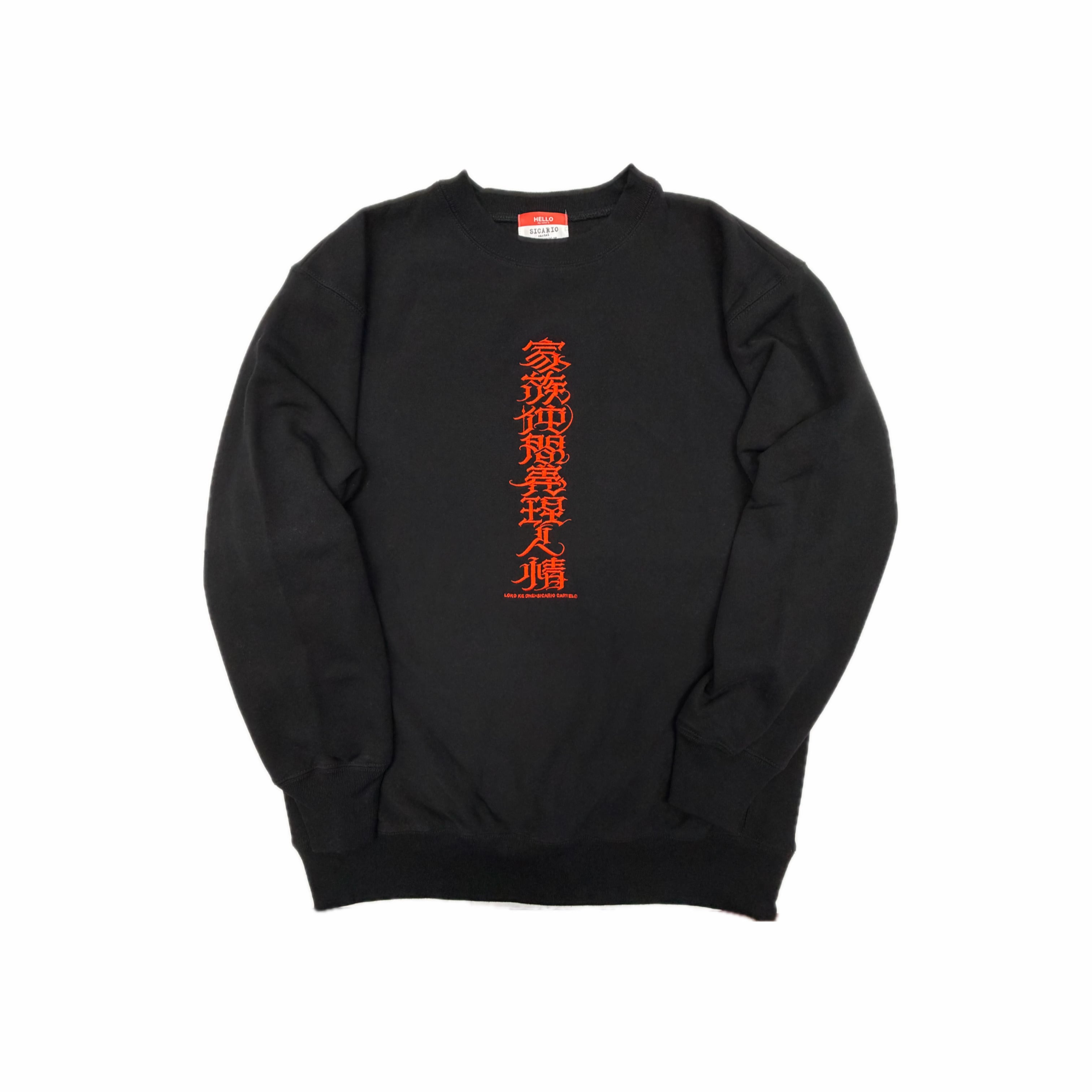 【刺繍】家族仲間義理人情 12OZ SWEAT 黒×朱