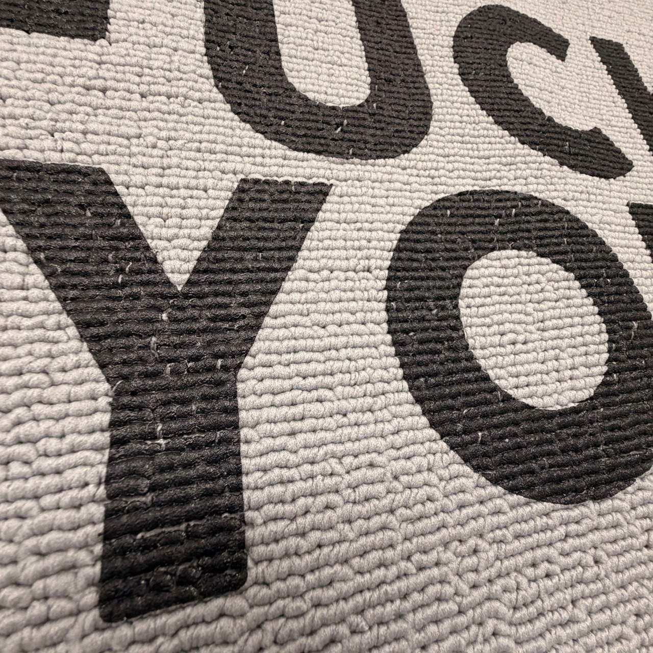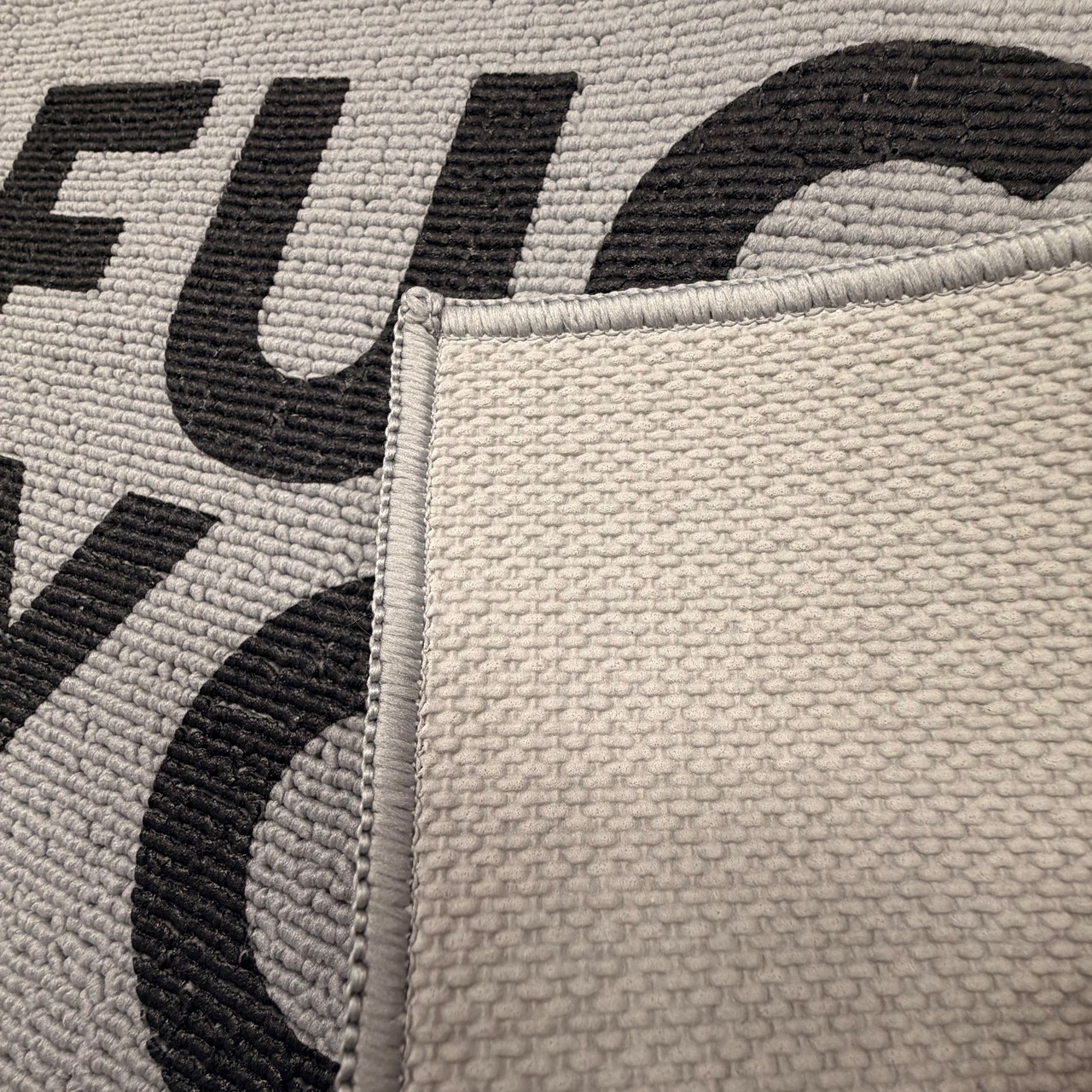 IKEAバスマットボディを使用。リサイクル材料含有率90%以上のバスマットに地球に優しいポリエステルインクでプリント致しました。裏は滑り止め加工されています。