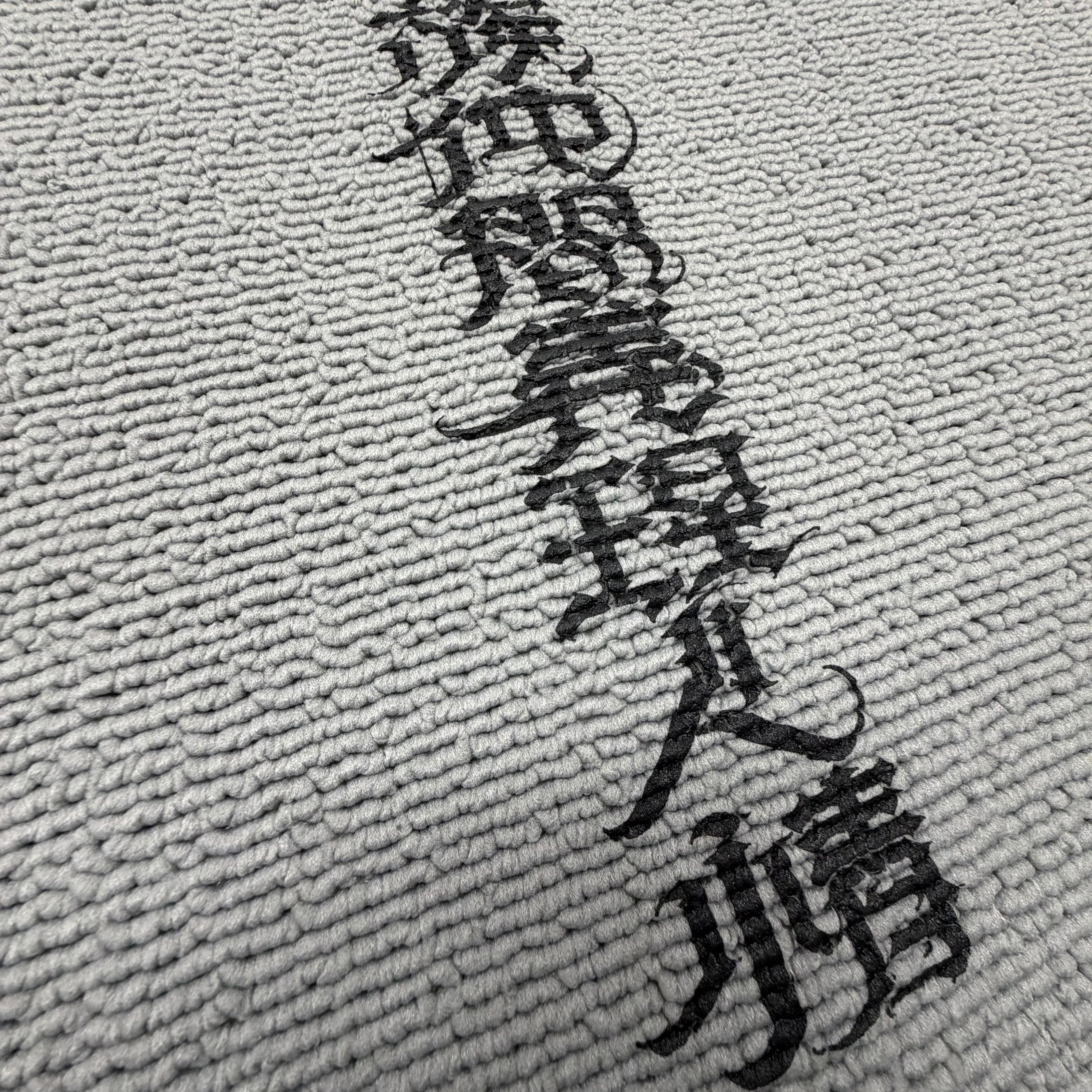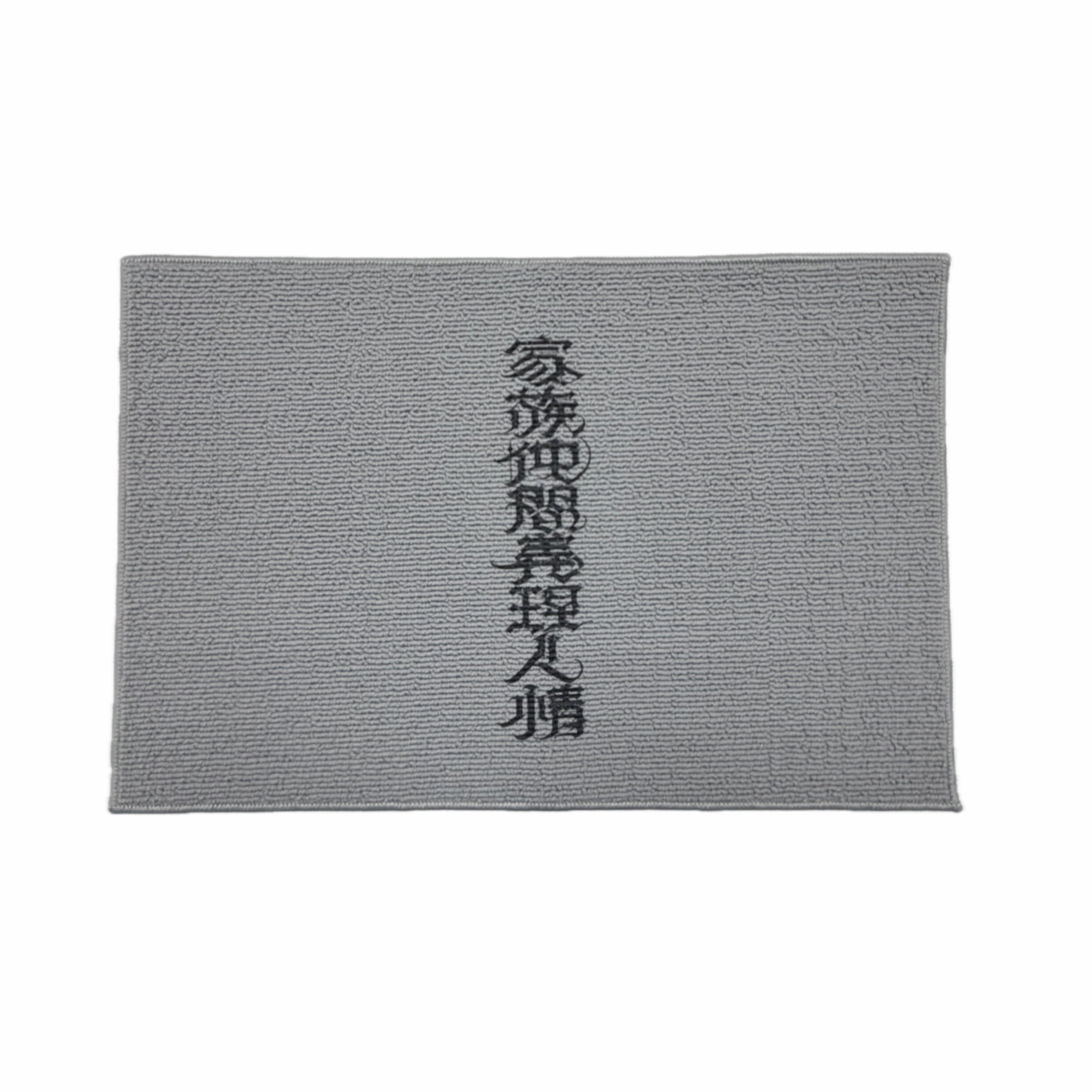 IKEAバスマットボディを使用。リサイクル材料含有率90%以上のバスマットに地球に優しいポリエステルインクでプリント致しました。裏は滑り止め加工されています。