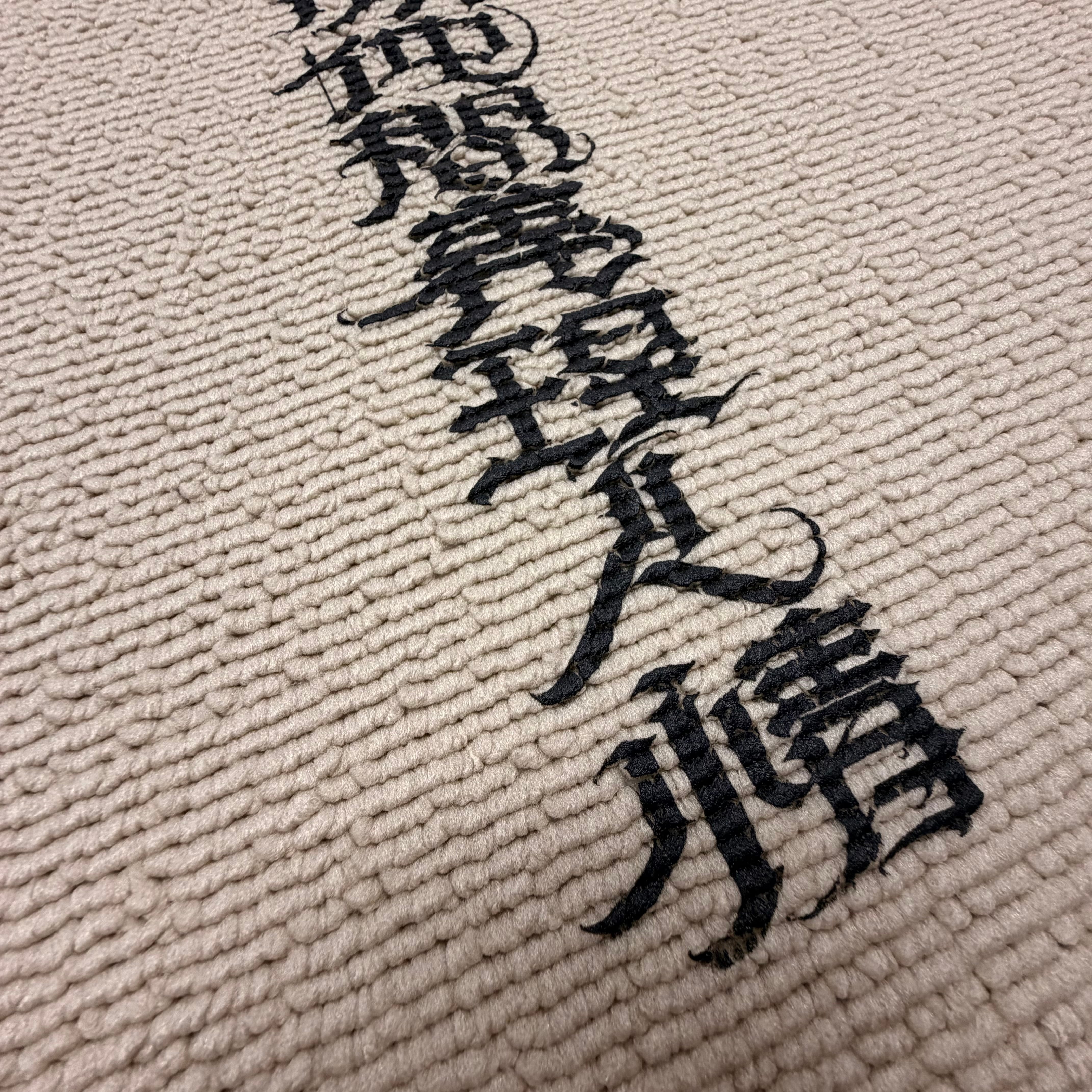 IKEAバスマットボディを使用。リサイクル材料含有率90%以上のバスマットに地球に優しいポリエステルインクでプリント致しました。裏は滑り止め加工されています。