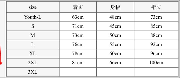 ・ボディはUSAサイズのため1サイズ大きい作りとなります。